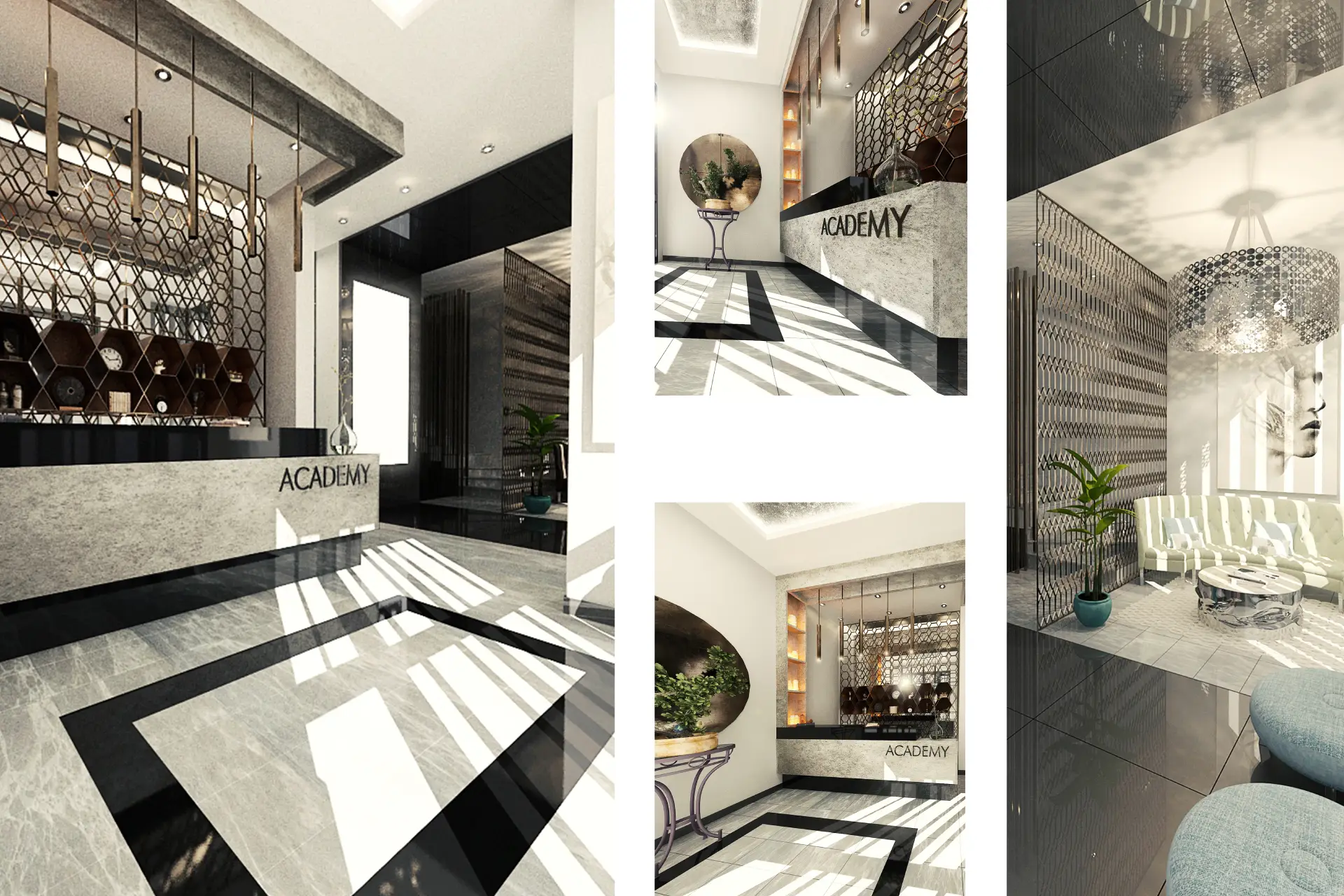 Academy Hotel projesi, çağdaş iç mimari dili ile endüstriyel dokunuşları birleştiren modern bir konaklama konsepti olarak kurgulanmıştır. Mekân tasarımında ahşap ve metal malzemelerin dengeli kullanımı, otelin kimliğini belirleyen sıcak ama sofistike bir atmosfer oluştururken; geometrik bölücüler, lineer aydınlatmalar ve yüksek tavan etkisi mekâna güçlü bir ritim kazandırır. Giriş lobisi ve ortak alanlarda akışkan sirkülasyon ve görsel süreklilik hedeflenmiş, misafir deneyimini destekleyen yarı kamusal oturma alanları oluşturulmuştur. Proje kapsamında otel odaları fonksiyonel konforu ön planda tutacak şekilde tasarlanmış; otelin kendine ait restoranı ise ahşap–metal ağırlıklı malzeme diliyle mekânsal bütünlüğü sürdürerek hem misafirler hem de dış kullanıcılar için sosyal bir çekim noktası olarak planlanmıştır.